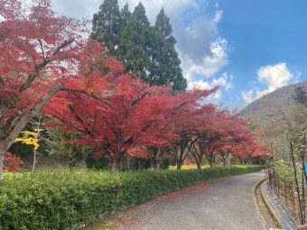 快晴の空の下、名残の紅葉が美しく気持ちの良いドライブで1時間半。