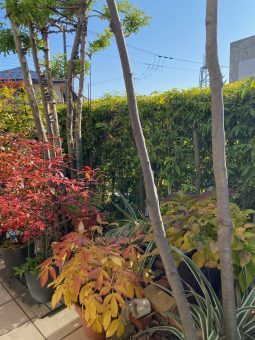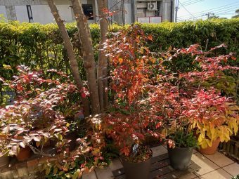先日の「出雲大神宮」の紅葉は見事でしたが、サロンの狭い庭も日に日に秋が深く濃くなっていますもみじやイチョウならぬ、ブルーベリー、紫陽花、芍薬・・ですが、それぞれに色合いが美しく鮮やかで、いつもながらに見入ってしまいます
